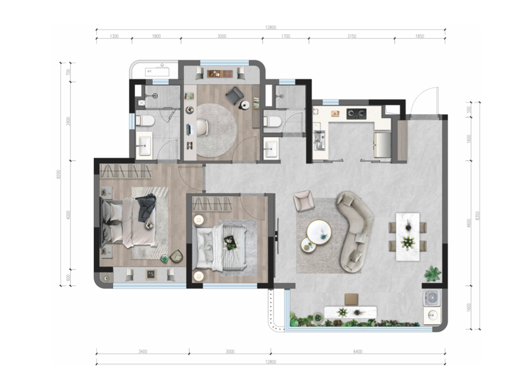 (建面约143㎡装修效果示意图 非交付标准)