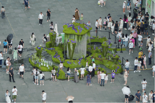 7月8日,一座以“塔希提”为名的巨型浮岛空降熙来攘往的春熙路,市民、各界名流争相打卡,引发媒体报道,关于“塔希提”的话题在成都人的社交网络圈刷足存在感。