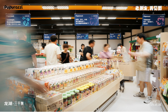 品牌焕新方面,三千集通过精准的业态配比与品牌组合,直切周边消费场域功能需求,对于区域商业进行升级和补足,传递一种极具松弛感的生活方式。 “比之前更精致更休闲,公共空间变大了,新商户很有特色,感觉又熟悉又陌生。”三千集重新开业的那天,尽管周边的铁皮打围还未完全拆除,但刚下班的黄彤已迫不及待地进去逛了一圈,“你好,老朋友,很高兴见到你!” “毛孩子的乐园” 焕新后的三千集,吸引的不仅仅是老朋友,还有慕名而来的年轻客群。 “我是第一次过来,主要是参加宠物店开业活动,买点玩具啥的,结果发现这里太适合毛孩子了。”00后女孩央央抱着自家的毛孩子——博美犬“泡芙”,认真地挑选宠物用具。 央央所在的帕帕拉兹宠物亚洲旗舰店,是亚洲最大全品类宠物游逛空间,也是焕新后的三千集最瞩目的特色所在。