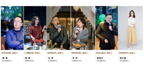 6大社群亮相,首批主理人集结 在「滨江生活+」中,涵盖缤纷成长圈、滨邻生活圈、运动自在圈、温暖聚光圈、滨邻熟人圈五大维度社群IP,覆盖亲子成长、生活方式、户外健身、社区公益、圈层社交五大领域,实现全⽅位覆盖不同层次的业主对于⽣活、商务、社交、运动等需求。 「滨邻共创营」,「一起趣社群」,「滨邻美食社」,「退休俱乐部」,「滨邻公益社」,「滨邻美学社」等6大社群正式亮相,他们主理人是各自领域的佼佼者,未来也将会是不同生活方式的引领者。