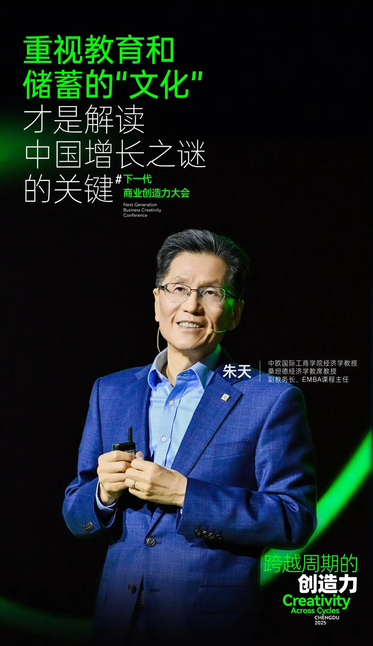 下一代商业创造力大会呼吁各界携手探索周期的本质、拥抱科技的力量、释放人的创造力。这场思想碰撞不仅勾勒出下一代商业的进化蓝图,更传递出一个共识:在不确定的时代,唯有用长期主义的眼光、科技与人文的双翼,方能破浪前行,共织商业未来的意义之网。