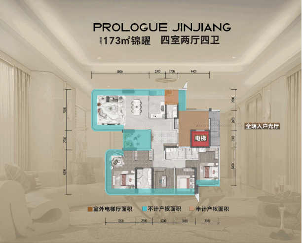 建面约173㎡的四房,是建面约140㎡户型的升级旗舰版,亦搭载了全景舱和三折叠屏双端厅设计,但尺度、视野效果及场景自由度都更上一层,堪比200平+大平层,入眼即有“家族传世感”。