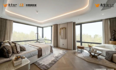 建面约143㎡端户产品,主卧270°环幕观景视野,近40㎡空间尺度,容纳了四大独立功能空间:“小家化”休息区、双台盆卫浴区、双排收纳衣帽间,以及“随机应变”的独立X空间:可根据需要升级为:总裁模式-独立书房 + 藏品展示区;社交模式-私享起居室 + 威士忌酒柜。形成一个比星级酒店更豪华的全景舱行政套房主卧。