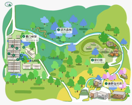 前庭公园通过对主理人商业(趣野乌托邦·Camping Block)、家庭聚落式IP游憩空间(奇幻岛·Wonder Block)、林下空间(这片森林·Inspiro Block)等复合功能区的打造,为城西礼献一座“主城公园新地标”。