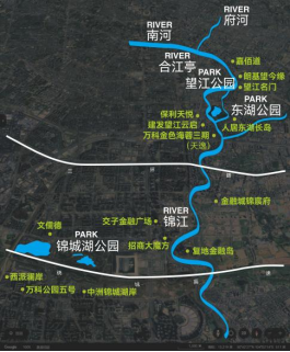 邻水而居,是刻在成都人基因里的浪漫,环城生态带中,清水河汇入南河交汇府河成锦江,孕育出锦江+清水河滨水豪宅“一横一纵”格局。