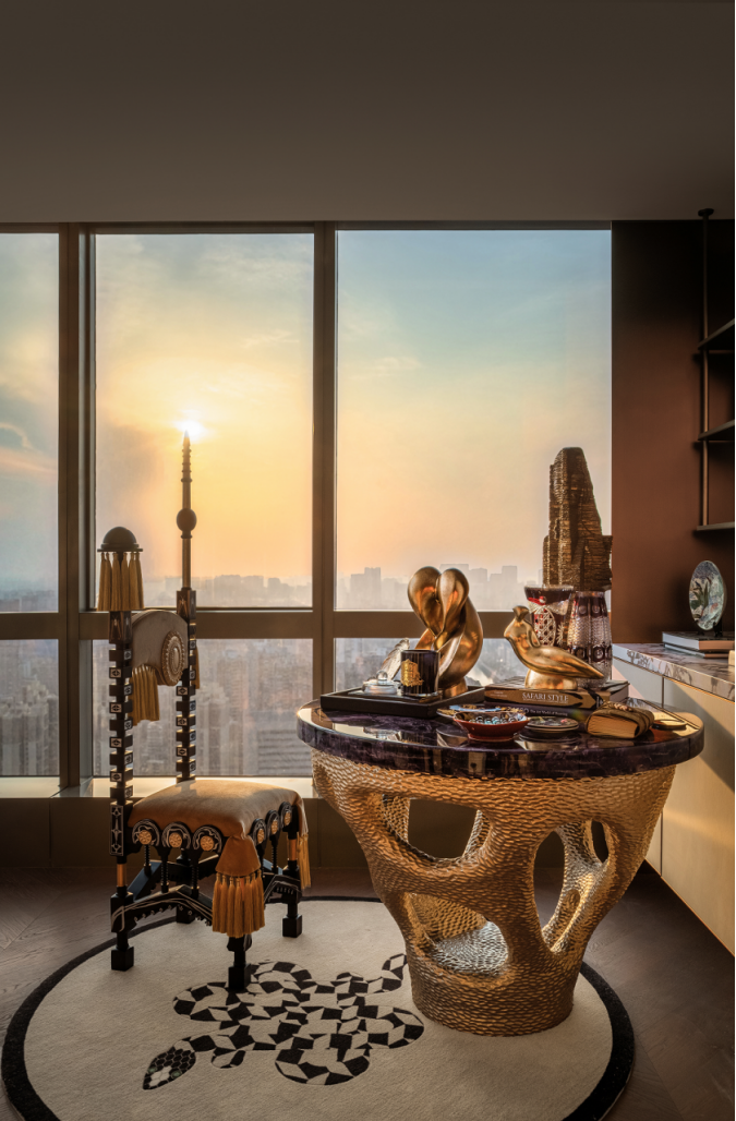 十五层打造JIA CLUB顶豪俱乐部。以复古休闲为语汇,融汇桌游、棋牌、电竞,成为业主放松畅聚的“第二个家”;四十五层打造高空CEO私享办公空间,化为嘉人战略书房,决策生于云端坐标。