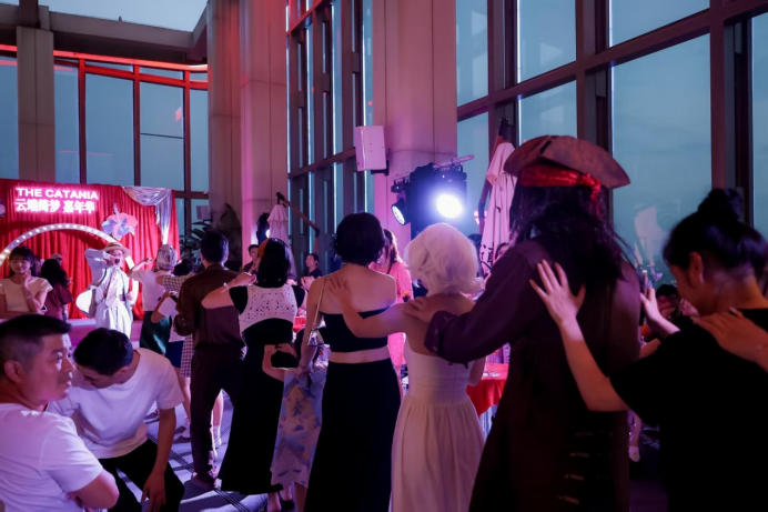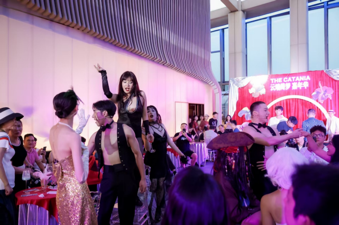13 日,云端绮梦—嘉年华活动在1 号楼 J222 天际会所盛大启幕,百老汇歌舞秀、麻辣摇摆舞会、盖茨比妆造派对、水上运动party……复古奢华与烟火潮流在此共生,把 “多元顶奢生活” 的想象拉到了极致。