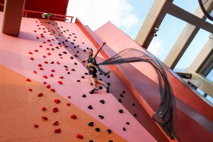 嘉佰道2号楼于海拔722米云端制高点,打造了亚洲TOP级、超千米全景开放布局的跑道式健身会所,融合天际跑步道、高空攀岩、VIP瑜伽、SPA桑拿等全领域健身空间,昼夜皆享史诗级体验,重塑高空健身的定义。