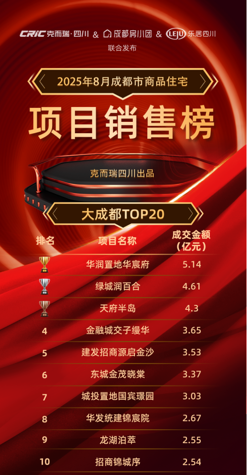 ·2025年8月成都商品住宅销售榜(部分),来源:克而瑞四川