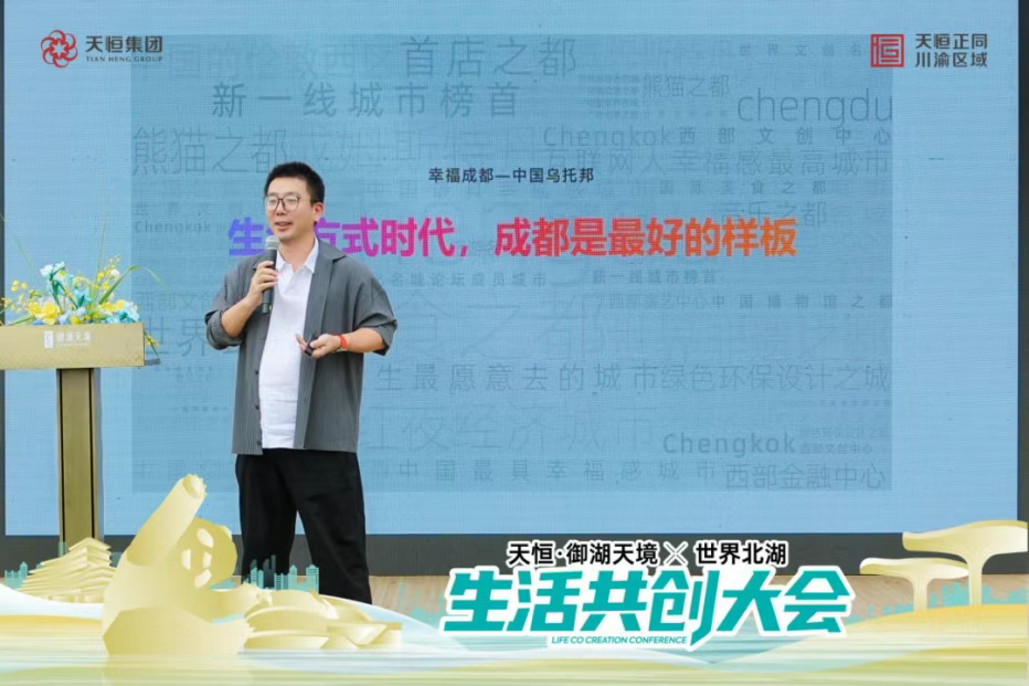 三千年的水波在此处停留,汇聚成北湖;三千年的文明在此处生长,指向未来。10月17日,一场关于理想生活的深度对话徐徐展开。成都市熊猫国际旅游度假区管委会的关注及支持下,由天恒集团,天恒正同川渝区域公司主办,成都市成华区人民政府龙潭街道办事处、成都兴华生态建设开发有限公司协办的【世界北湖生活共创大会】在北湖公园圆满落幕。天恒川渝区域公司党支部书记、总经理陈亮、成都市熊猫度假区党工委委员丁照睿、知名文旅品牌专家、阿那亚首席品牌官田海成、《四川知道》总经理-郭洁、《看透成都》联合创始人-潘思吉、天恒川渝营销及商业团队全员,天恒的业主及众多媒体大咖以及每一位热爱生活的人们相聚在北湖畔。