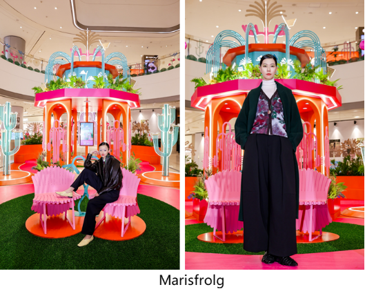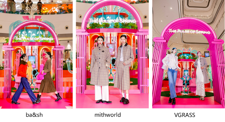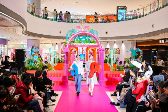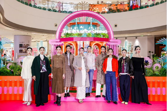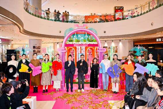春意渐启,关于能量与新生的美好想象由此展开。展览启幕当日,一场主题为“福纹春行”的时装秀拉开了活力序幕。模特们身着来自品牌AW PROJECT、ba&sh、Marisfrolg、mithworld、VGRASS共同呈现的10套新春限定新装,搭配“植物图鉴”主题头饰与艺术装饰,以能量为引,诠释东方美学与现代时尚的碰撞,让观者直观感受到灵动而雀跃的生命力,共赴一场春意流转的时尚旅程。在艺术家单晓明先生、成都IFS副总经理麦伟成先生与成都IFS推广及市场部副总监何洁仪女士的共同举杯祝福中,展览正式启幕。