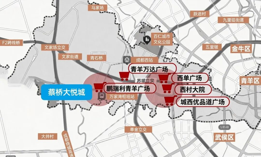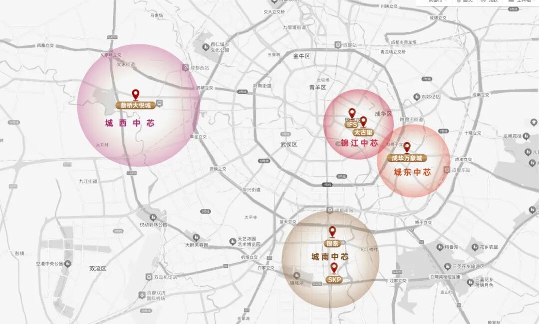 大悦城落子蔡桥,宣告城西终于拥有与金融城、春熙路平视的区域级商业极核。从此,成都格局正式从“南金融城、东万象城、中春熙路”,新增为“西大悦城”的多中芯鼎立的主城全新商业格局。