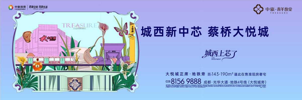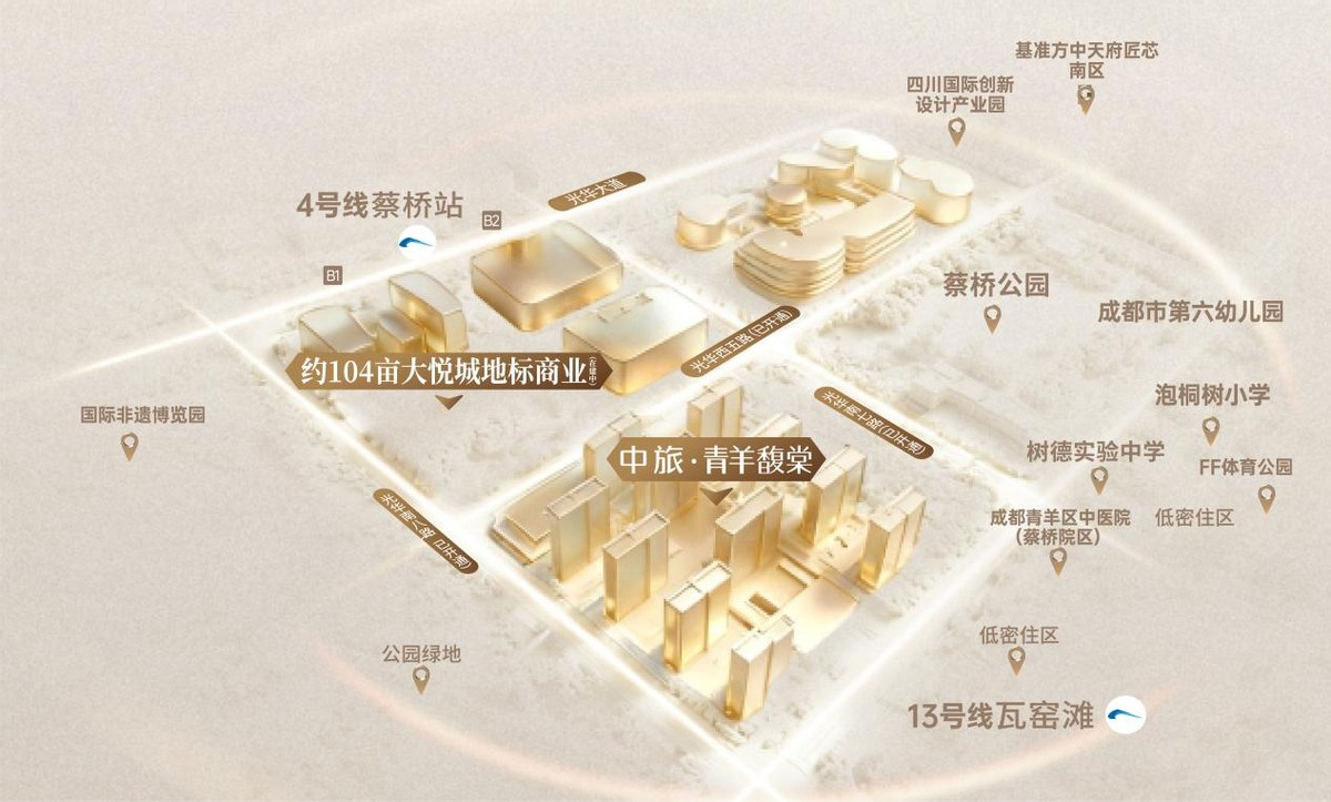 中旅·青羊馥棠, 匠造建面约143-190m²谨此在售准现房奢宅,精准占位城西新中芯核芯,以稀缺产品力与强大兑现力,与蔡桥大悦城并肩,共筑成都城市新封面。