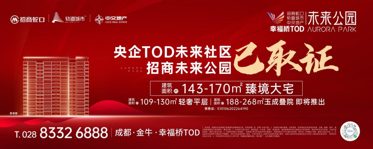10月27日晚,金牛区幸福桥TOD二期——招商未来公园项目一批次取得了预售许可证,推出1号地块150套房源,建面约143-170㎡。